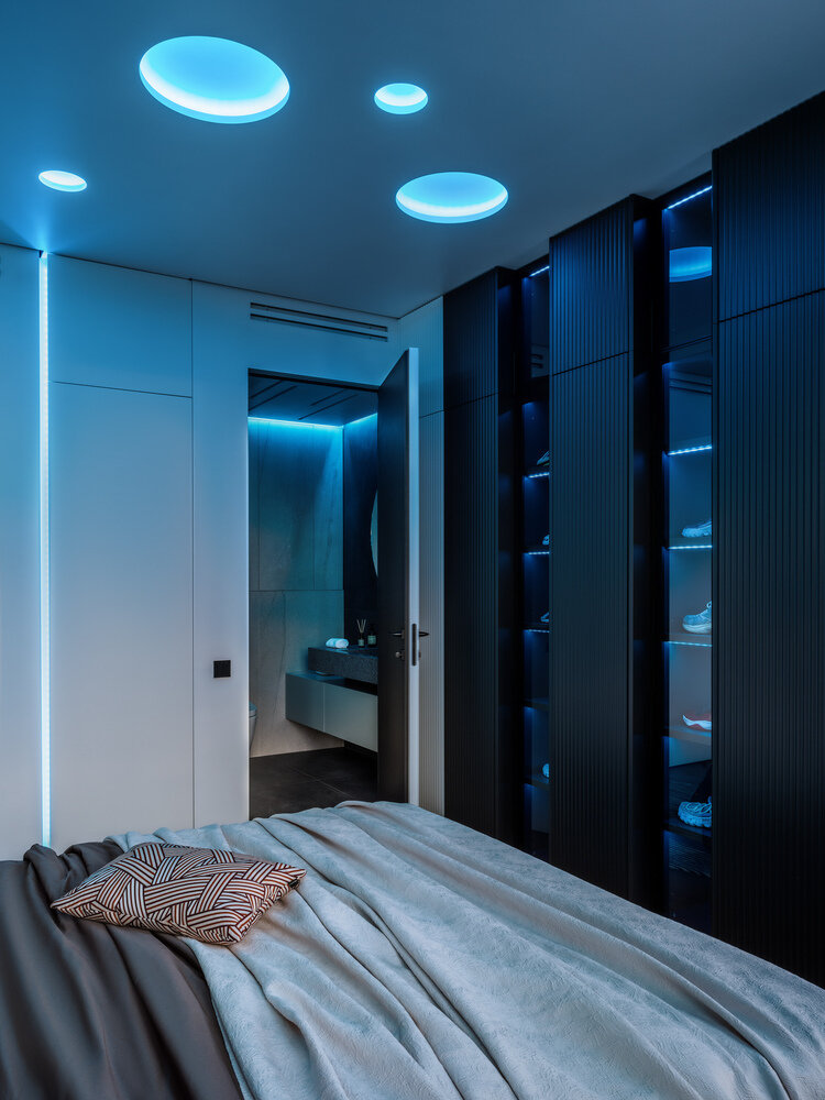 Фотография: Спальня в стиле Современный, Минимализм, Квартира, Проект дня, Монолитный дом, 2 комнаты, 60-90 метров, ЖК «Spires», Карен Карапетян, Анна Прохорова – фото на INMYROOM