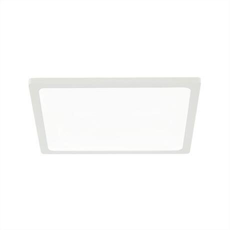 Изделие мощностью 15Вт, световой поток 1200Лм, цветовая температура – 3000К – тёплый свет, класс защиты IP20, осветит до 6м². Внешний размер светильника 14,5х14,5, глубина врезки 2см.