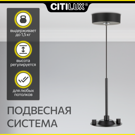 Подвесная система Citilux CL7011 позволяет из потолочных светильников сделать подвесные модели. Основание чёрного цвета, изготовлено из ударопрочного полимера, поверхность матовая.